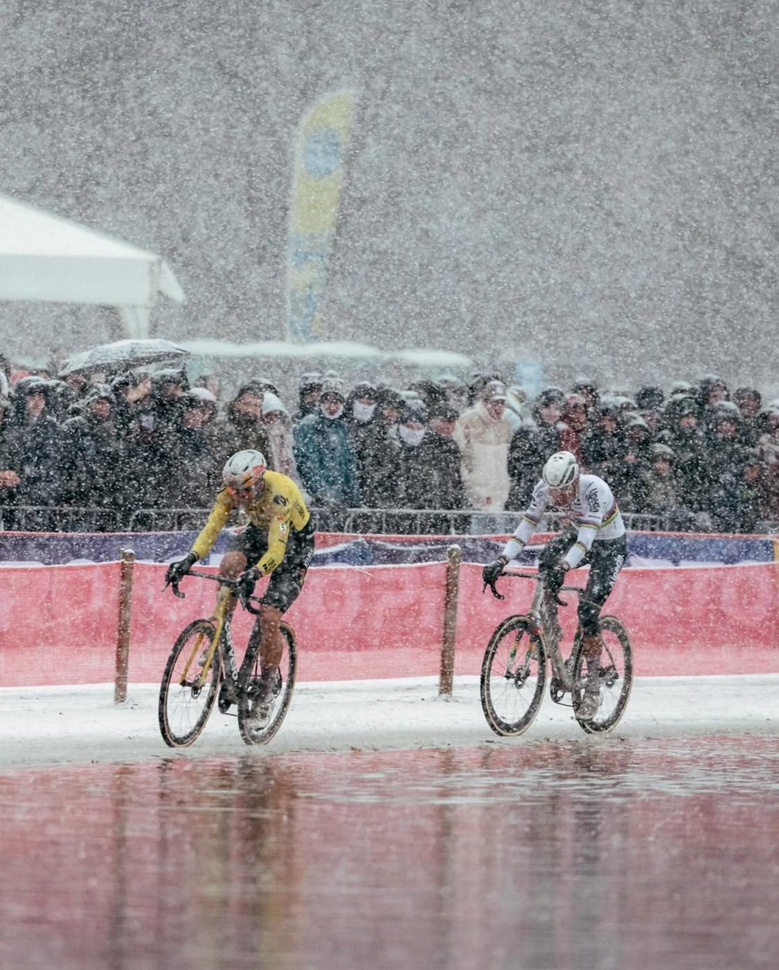In Mol leek zich opnieuw een kans op eerherstel aan te dienen. Op het besneeuwde en veeleisende parcours wist Van Aert geleidelijk het gat naar Van der Poel te dichten, wat zijn veerkracht en vastberadenheid onderstreepte ondanks de moeilijke omstandigheden.